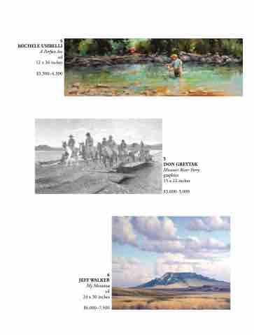 4 MICHELE USIBELLI A Perfect Arc oil 12 x 36 inches $3,500–4,500 6 JEFF WALKER My Montana oil 24 x 30 inches $6,000–7,500 5 DON GREYTAK Missouri River Ferry graphite 13 x 22 inches $3,000–5,000