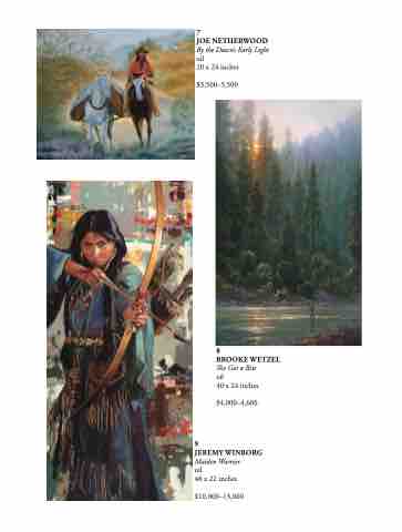 7 JOE NETHERWOOD By the Dawn’s Early Light oil 20 x 24 inches $3,500–5,500 8 BROOKE WETZEL She Got a Bite oil 40 x 24 inches $4,000–4,600 9 JEREMY WINBORG Maiden Warrior oil 48 x 22 inches $10,000–13,000