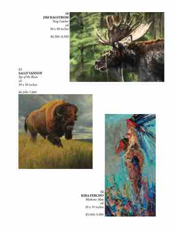 10 JIM HAGSTROM Twig Catcher oil 36 x 48 inches $6,500–8,500 11 SALLY VANNOY Eye of the Bison oil 30 x 30 inches $6,200–7,000 12 KIRA FERCHO Medicine Man oil 20 x 10 inches $3,000–5,000