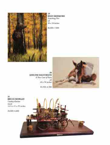 21 BRUCE MORGAN Cowboy Kitchen wood 14 1⁄2 x 11 x 35 inches $4,000–6,000 20 ADELINE HALVORSON A New Coat of Paint oil 20 x 30 inches $3,500–4,500 19 RYAN SKIDMORE Scratching Post oil 30 x 24 inches $6,000–7,000