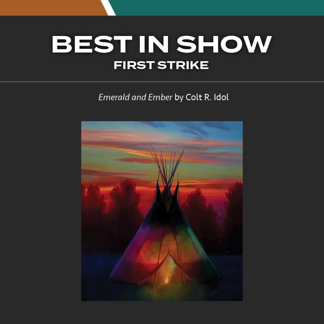Emerald and Ember by Colt R. Idol was awarded Best in Show at this year’s First Strike Auction. A Montana-based artist, Idol is known for bold color, dramatic light, and a modern interpretation of the West—bridging history with a vibrant, contemporary edge.