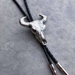 Handcrafted Silver Bronze Skull Bolo Tie