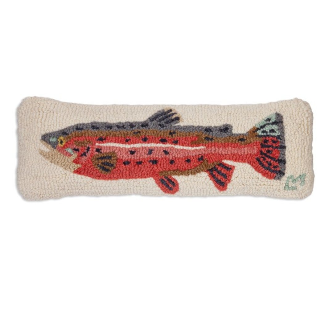 Our Bright Trout hooked wool pillow is a fresh take on a classic Chandler Trout pillow. This large, colorful trout will make a lovely addition to your home’s décor regardless of whether it lands in the living room, bed room, or entryway.