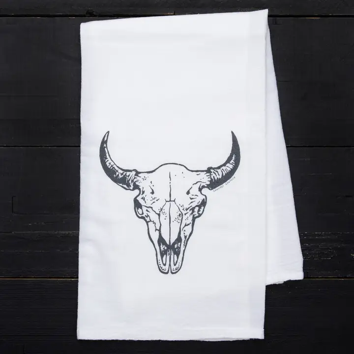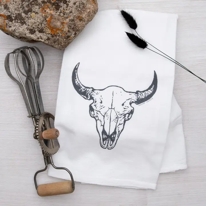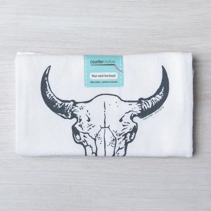 Counter Couture was founded by Kaelin and her husband Richard. We built Counter Couture out of a basic desire to live a creative and fulfilling life, with a bit of silliness tossed in. Every print starts as a pen and paper illustration drawn by us. These are: kitchen towels People also consider: tea towels, dish towel Perfect for: kitchen, tabletop linens, gifts for women, unique gifts, home decor, kitchenware, unique, handmade, teacher gifts, insider, cow skull, buffalo skull