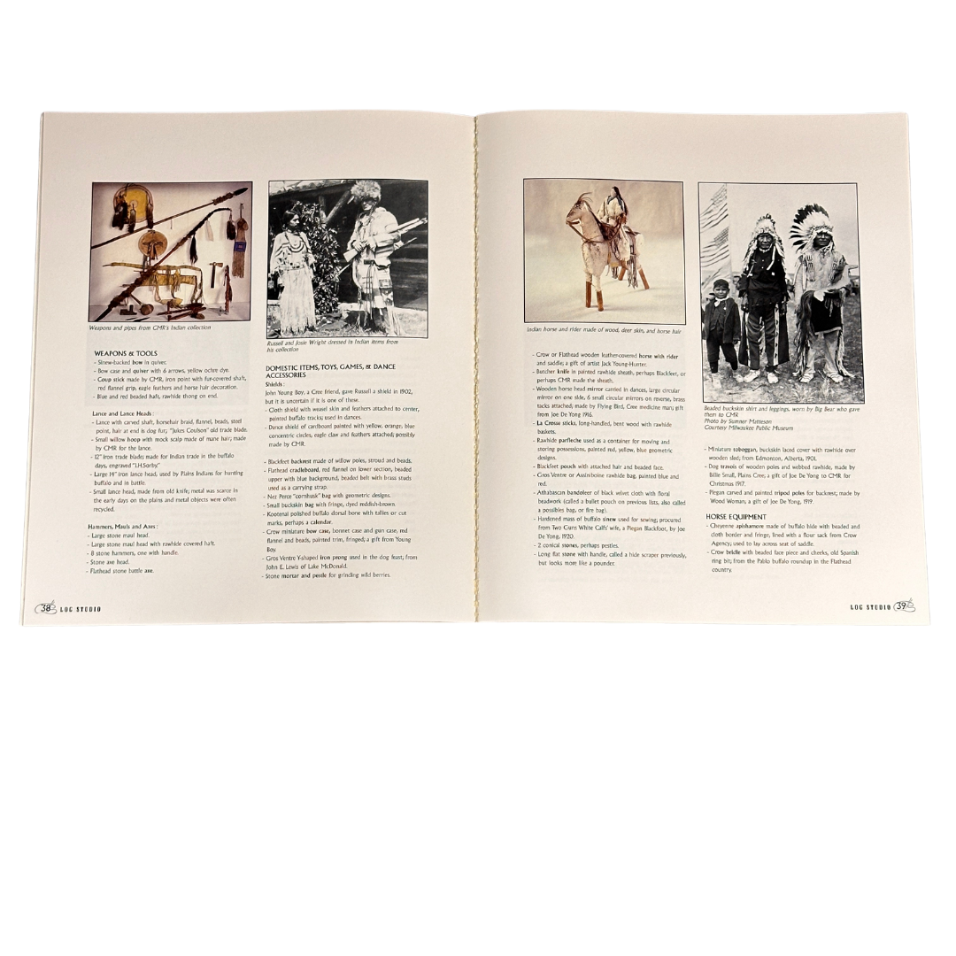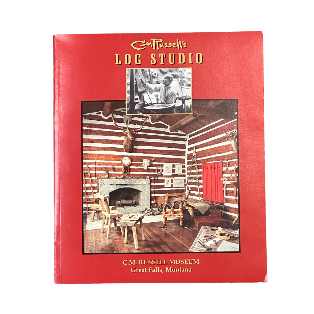 Charlie Russell’s artistic activities were immersed in a small log studio located adjacent to his home. This simple structure held great meaning for Charlie, representing the past which he knew so well and loved so intensely. He was able to walk through the door of the studio, back to the days of untamed land and men, to conjure up scenes which quickly appeared on his canvases. He was surrounding by his collections of cowboy and Indian gear, mounted wildlife, photographs of friends, and the ambiance of his earliest years in Montana with Jake Hoover.