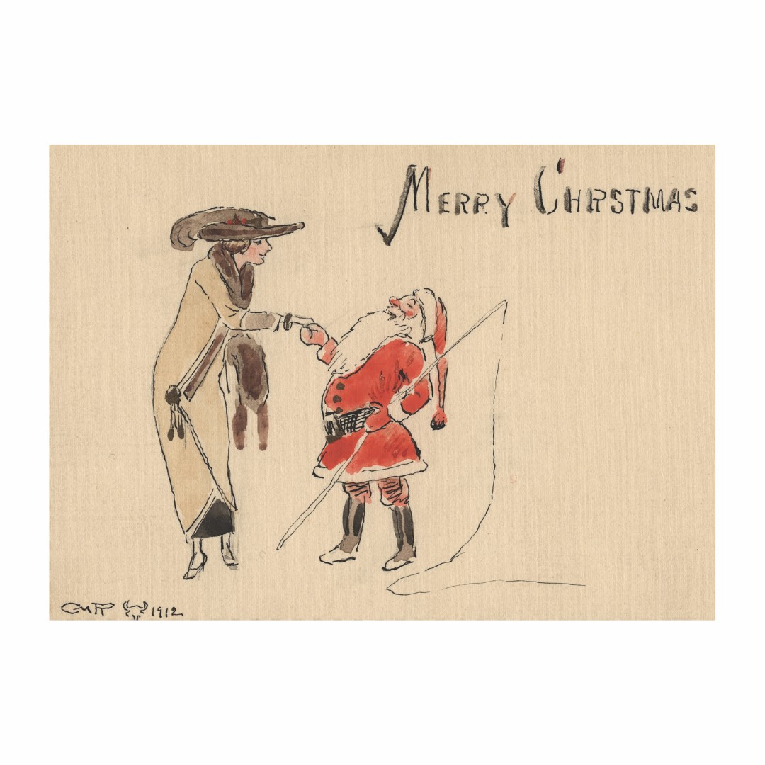 Charles M. Russell (1984-1926), Merry Christmas card to George B. and Minnie Patterson Calvert, 1912