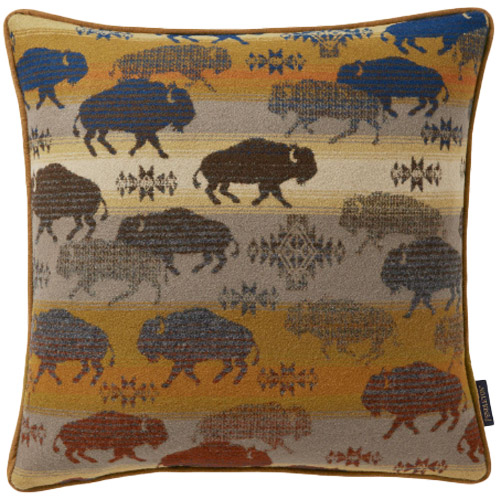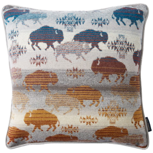 Add a rustic touch with a vivid pattern inspired by Yellowstone’s buffalo (American bison), one of the largest remaining herds in America. On premium fabric woven in the Northwest mills, earthy tonal browns meet rusty red and blue for a vibrant yet calming design. Zip closure.